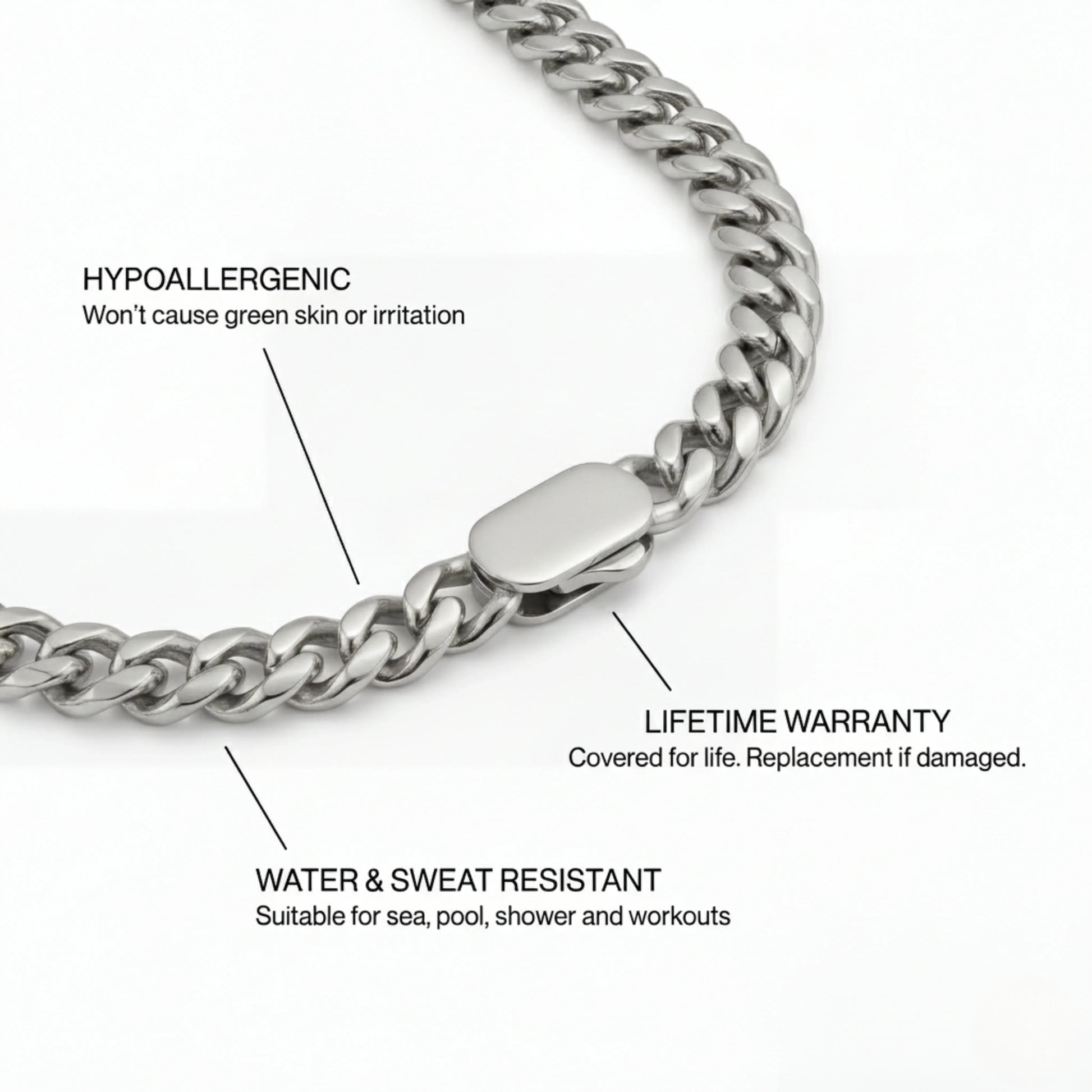 De zilveren Cuban ketting met unieke sluiting is een must-have. Draag hem alleen of combineer met andere sieraden, altijd een stijlvolle indruk!