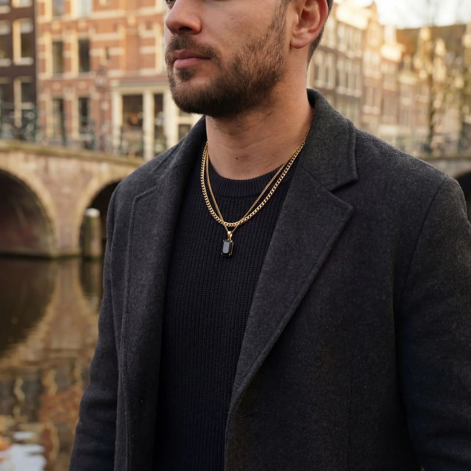 De zwarte steen is scherp geslepen en trekt meteen de aandacht. Simpel, stoer en altijd goed te dragen.