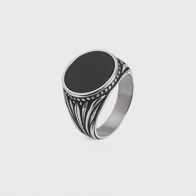 Deze zegelring bevat een handgezette Onyx die de natuurlijke schoonheid van de steen benadrukt. Het tijdloze ontwerp en de duurzame afwerking maken het een veelzijdig sieraad voor elke gelegenheid.